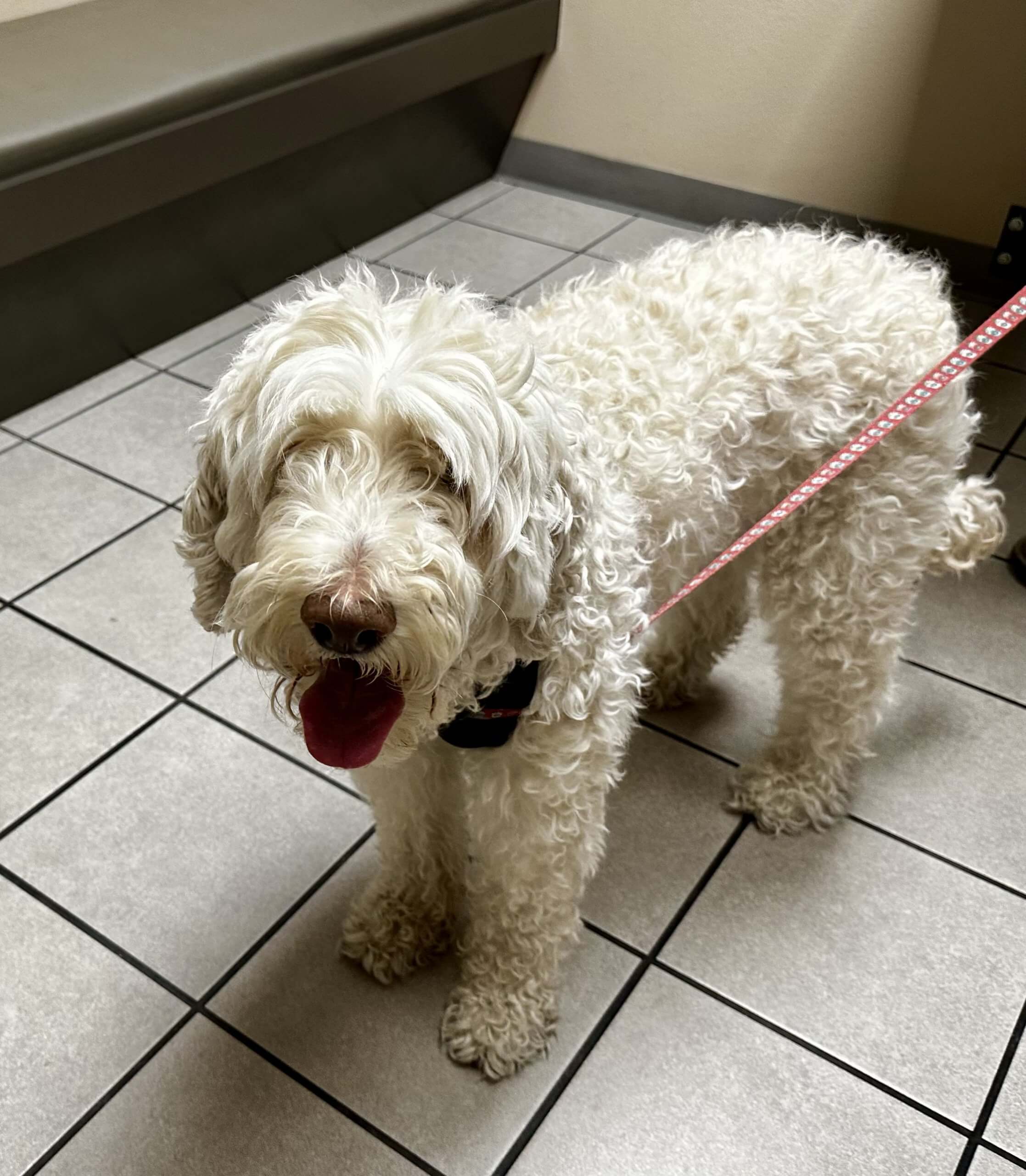 Atticus is believed to be around 5 years old, though we can’t say for certain. He’s a handsome white Goldendoodle with the fun-loving, energetic personality the breed is known for. Full of life and always ready for an adventure, Atticus brings a joyful spirit wherever he goes.